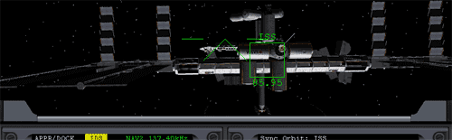 W momencie gdy będziesz w odległości około 1 kilometra, wytrać prędkość względną. Krótkie klepanie na silniki główne i wsteczne (lub użycie joy'a z kontrolką przyspieszenia) pozwoli ci na dokładną kontrolę. Kiedy będziesz w odległości 1 kilometra od ISS, system ostrzegania przy podchodzeniu zacznie wydacać dźwięki "ping". Z im większą częstotliwością je słyszysz, tym bliżej jesteś ISS.