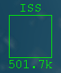 obrazku widać, że ISS jest od nas w odległości 58.55 kilometrów. Mój statek leci