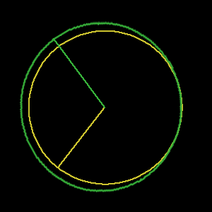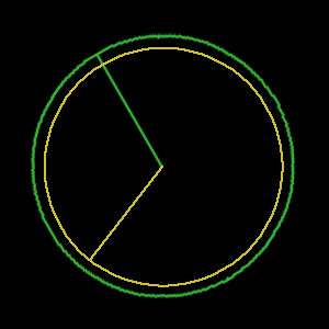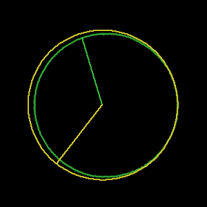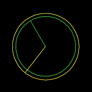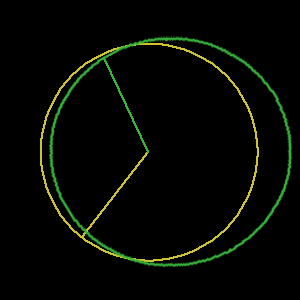 tak wygląda twoja orbita (pamiętaj, zielona linia to twoja orbita a żółta linia