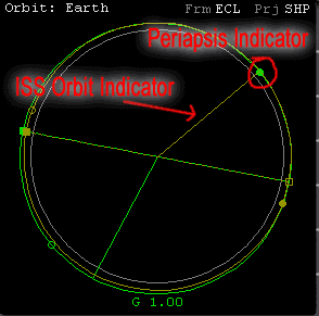 pozycji ISS na jej orbicie (ISS Orbit Indicator) przecina wskaźnik perycentrum