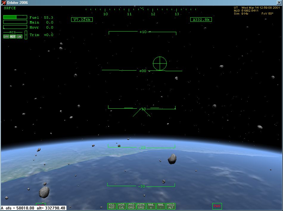 Orbital SceneryThis is an orbital scenery generation module. It creates and moves objects as vessels, which act as asteroids, with random velocity and rotation. Requires Orbiter to run. |
